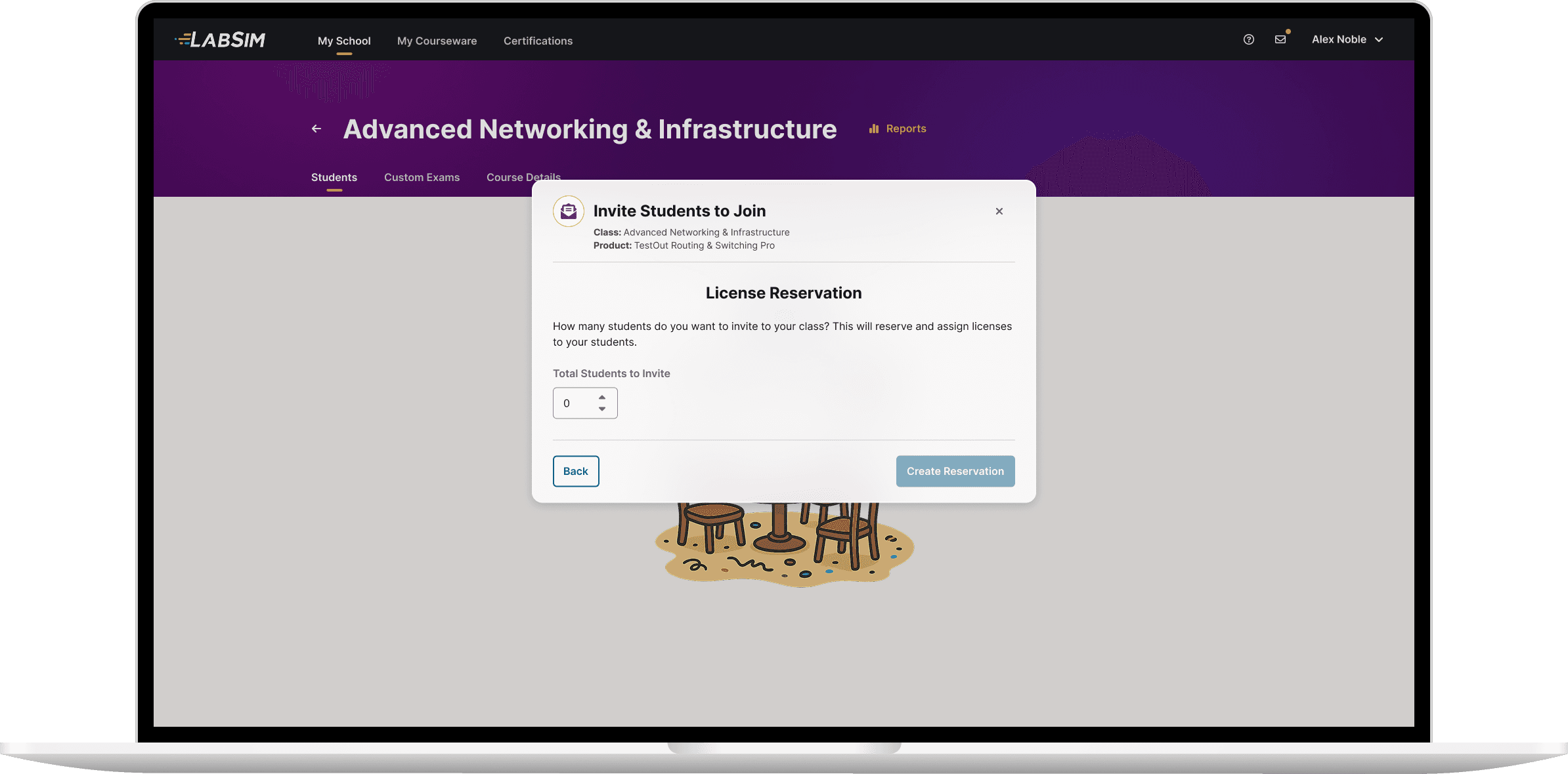 To do this, we introduced a new feature in LabSim: license reservation. Previously, students had to join a class before their teacher could assign them a license. The new process allowed instructors to reserve licenses for their class, at the same time as sending invitations to join the class. As soon as a student joined the class, one of the reserved licenses was automatically assigned to them. Unused licenses were returned to the school’s license pool 7 days after the invitations were sent.