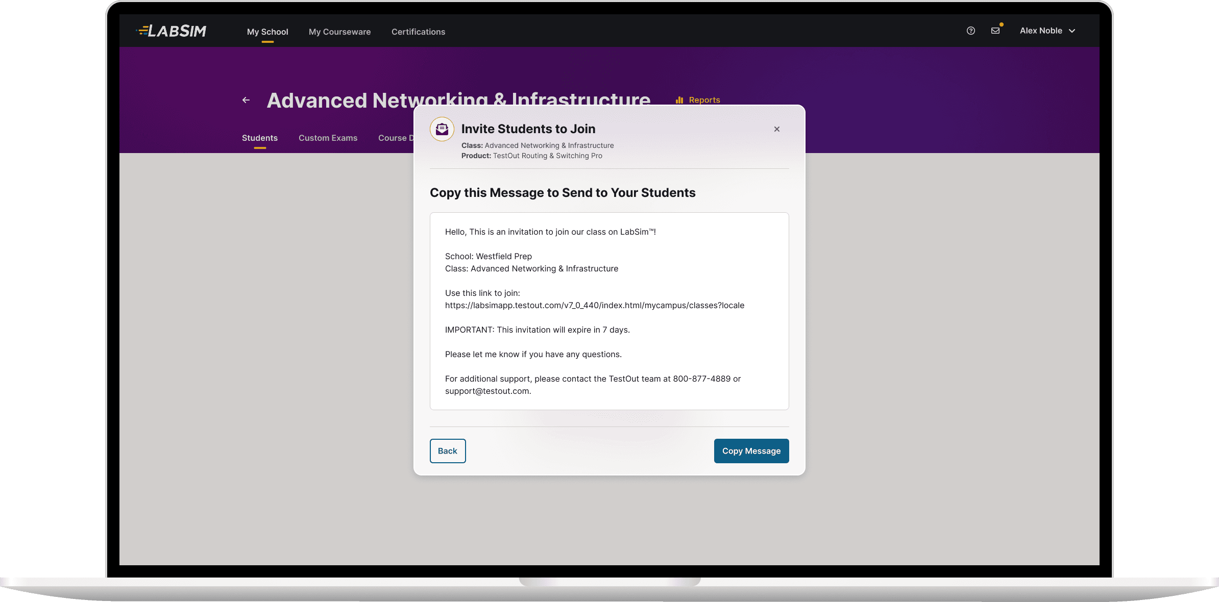 The new workflow also addressed the problem of school districts blocking emails from LabSim. It allowed teachers to copy and paste an invitation email template, and send it to students themselves. Because instructors sent the invitations themselves, they knew when the messages were sent, and would be notified if a message was not delivered.