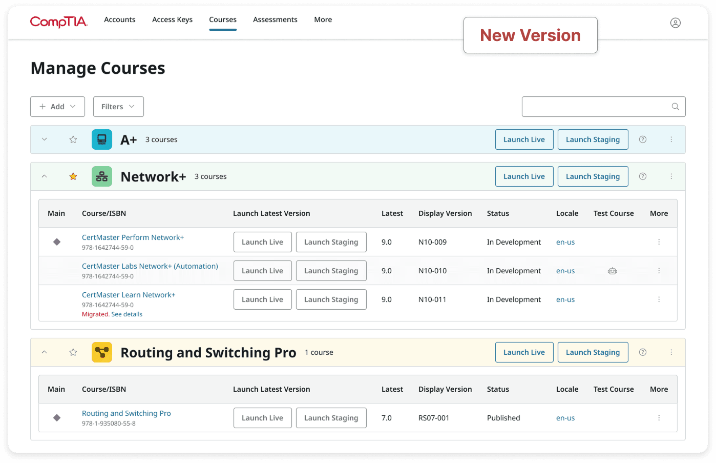 The new version of the Manage Courses tool supported 2X course release year-over-year, and saved CompTIA $6M annually.