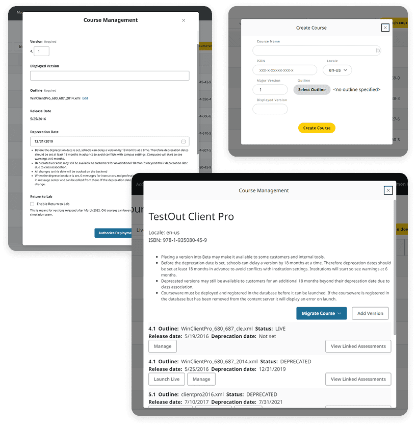 With CompTIA’s acquisition of TestOut and their LabSim learning platform, the company gained a proprietary location for hosting courses — representing an annual savings of $6M. They also set a goal to increase revenue through accelerated course production. The key to both business objectives was updating LabSim’s internal-facing Manage Courses tool.
