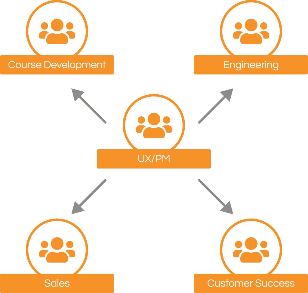 I worked with Product Management to identify the teams that used the Manage Courses tool. I conducted interviews with each group: Engineering, Course Development, Customer Success and Sales. I asked about pros and cons, and learned about their goals in using this tool. I learned that the Course Development team used the Manage Courses tool far more than any other group.