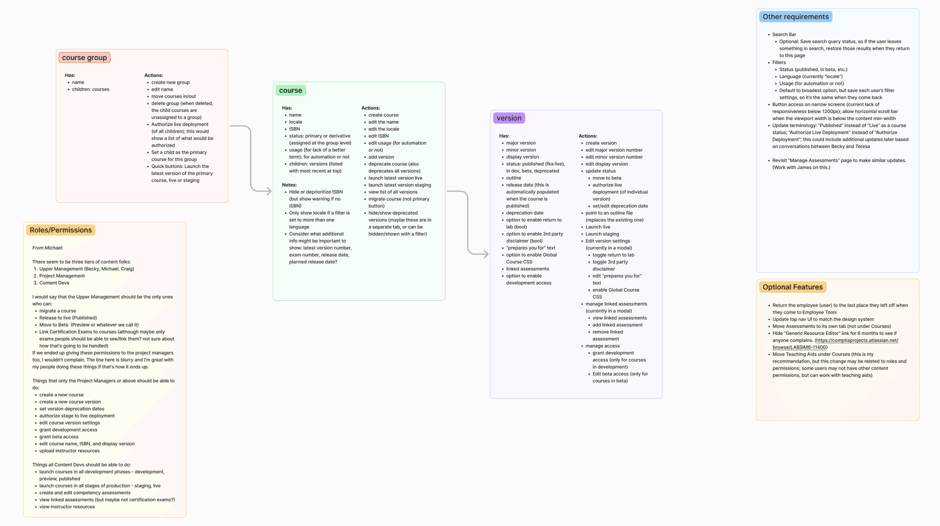 This was my first attempt at describing the information architecture needed to support the requirements of the new course organization structure.